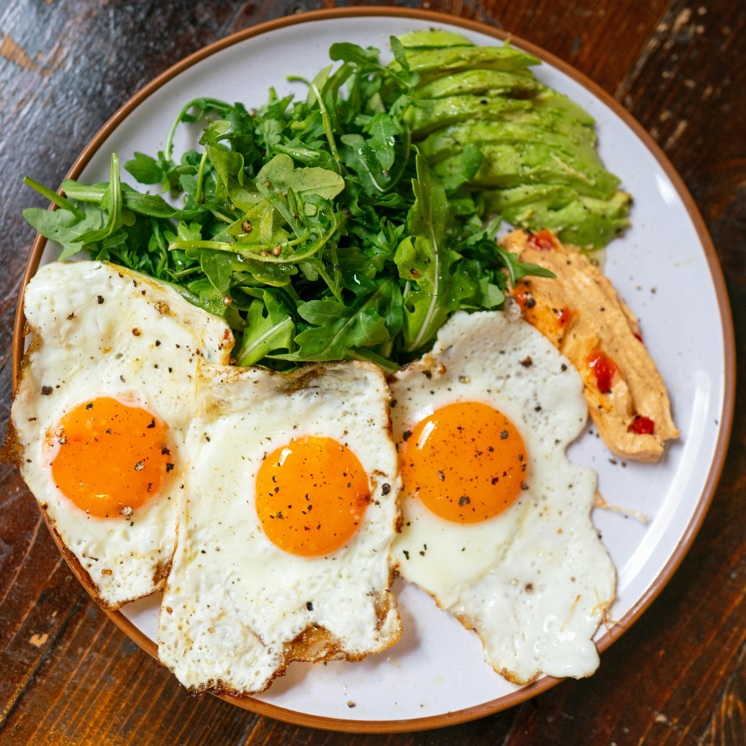 簡単なメニューだと、ゆで卵をサラダにトッピングしたり、スープに落とすだけでも十分で、筋トレしてるならリカバリー食材として卵を取り入れるのもOK!オムレツやスクランブルエッグにすれば食べ応えもあり満足感も高いです!