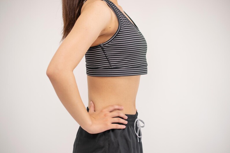 骨格ストレートさんは体の厚みや上半身に筋肉がつきやすいといった特徴から胸周りが張りやすく、その影響で反り腰が強い傾向があります。