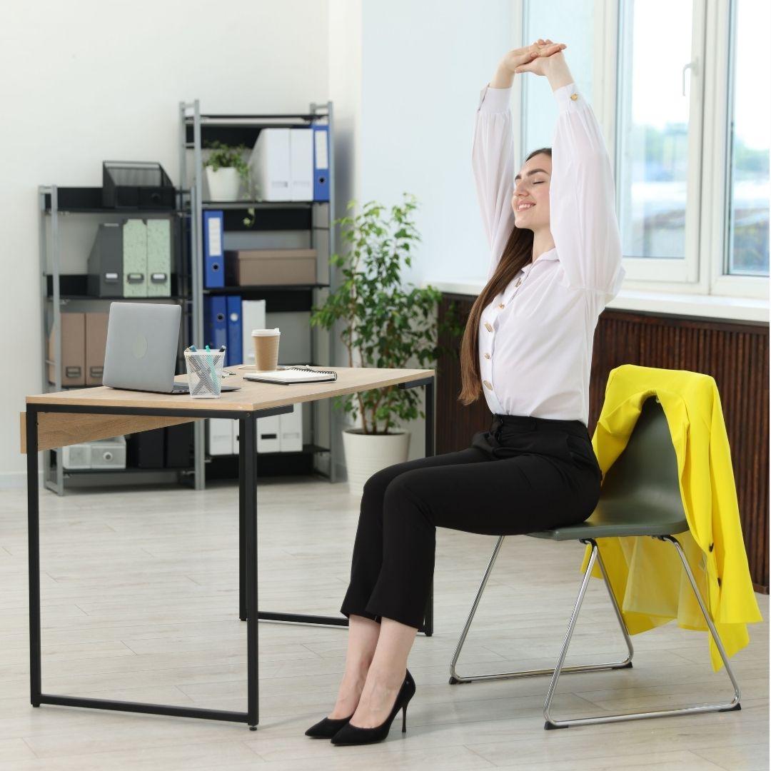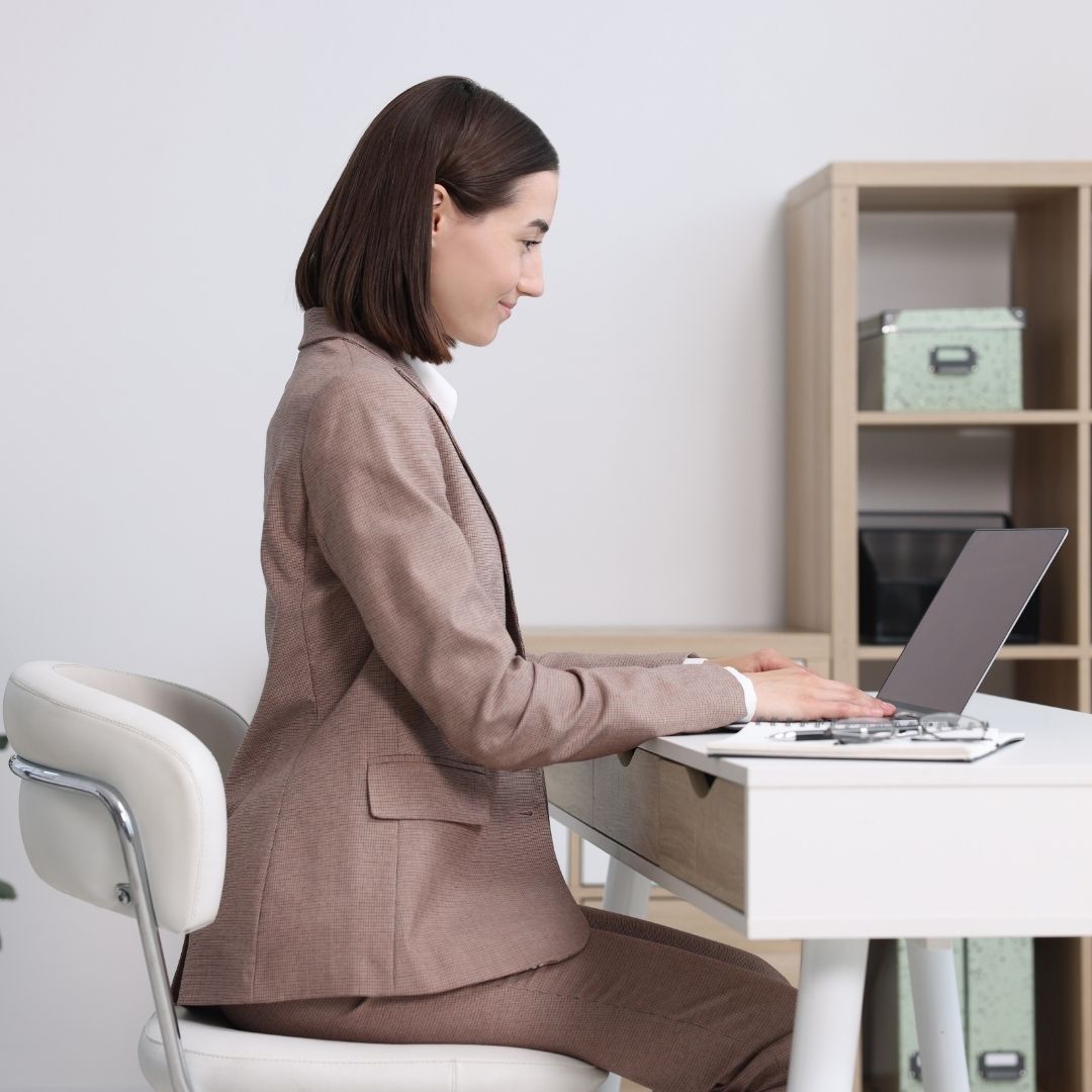 はじめに椅子に座るときは、まず骨盤を立てることを意識しましょう。