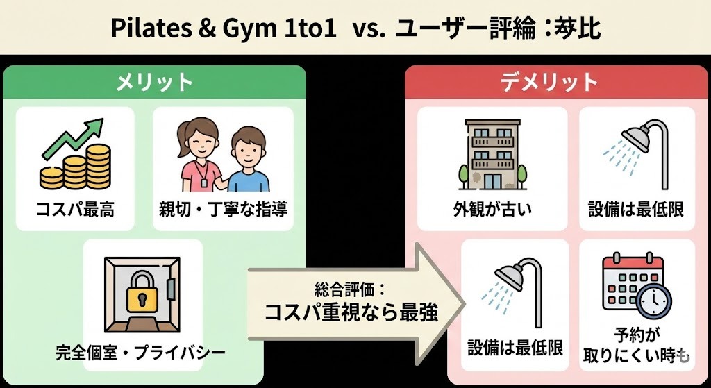 ピラティス&ジム1to1の口コミや評判について、リサーチ結果とプロの視点から徹底的に検証してきました。